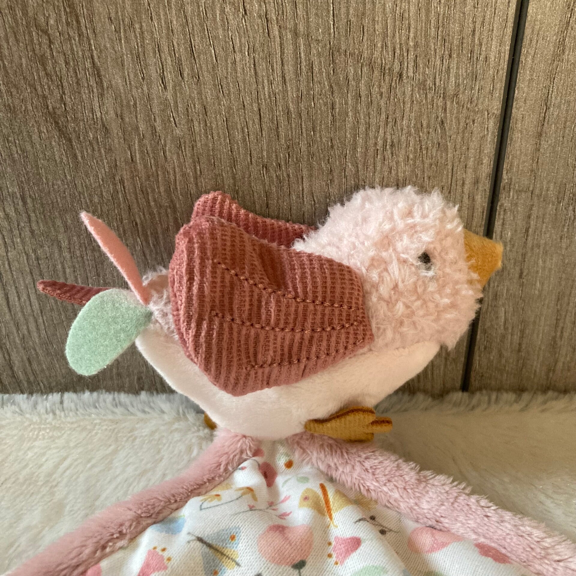 Zacht en zoet. Geen kinderkamer is compleet zonder een troostend knuffeldoekje binnen handbereik. Dat maakt het meteen een ideaal kraamcadeau. Deze variant van Little Dutch is versierd met onze nieuwe Flowers & Butterflies print. Het knuffeldoekje kalmeert en helpt een kleintje om in slaap te vallen. Het is voorzien van een zacht vogeltje, makkelijk vast te pakken knopen en leuke labels om te ontdekken. Oh, en je kunt gemakkelijk een fopspeen of bijtring bevestigen aan de katoenen lus.