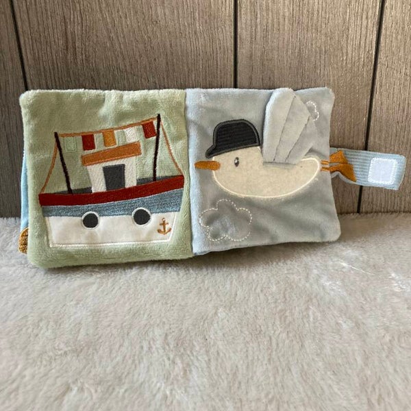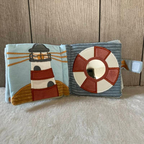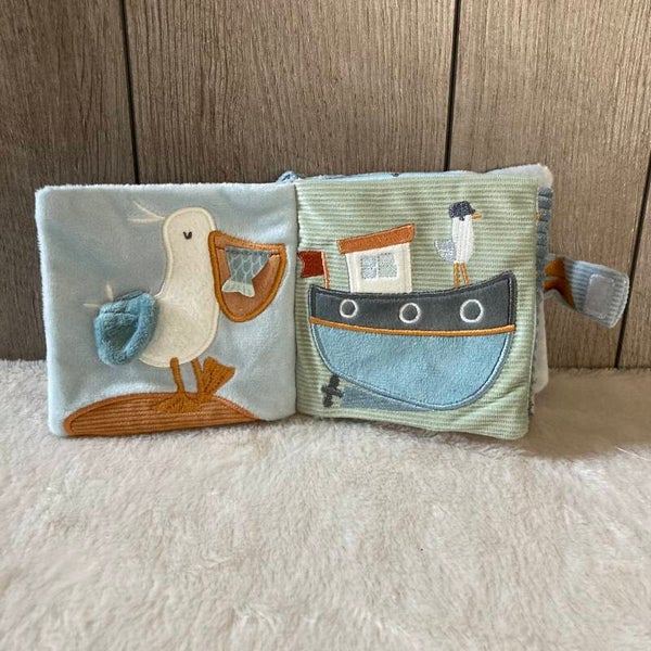 Rammelende geluiden, knisperende stofjes en een spiegeltje in de vorm van een reddingsboei. Er valt zoveel te ontdekken in dit betoverende buggyboekje. Het is gemaakt van verschillende speelse texturen en draait om het leven in Sailors Bay. Van zwemmende meeuwen tot een pelikaan die met zijn snavel een vis uit het water schept. Elke pagina bevat kleurrijke illustraties en biedt interessante activiteiten die de hand-oogcoördinatie stimuleren. Bevestig de lus aan de kinderwagen voor entertainment onderweg.