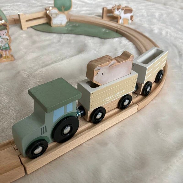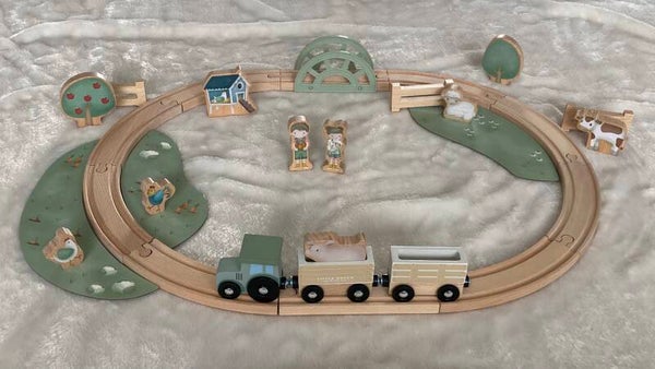 Tuut tuut. Ga op eindeloze avonturen met deze houten treinbaan uit de Little Farm collectie. Stap op de trein en ga naar de boerderij, samen met alle diertjes. Wat een gezelligheid. Elk houten figuur is aan beide kanten voorzien van een gedetailleerde illustratie.