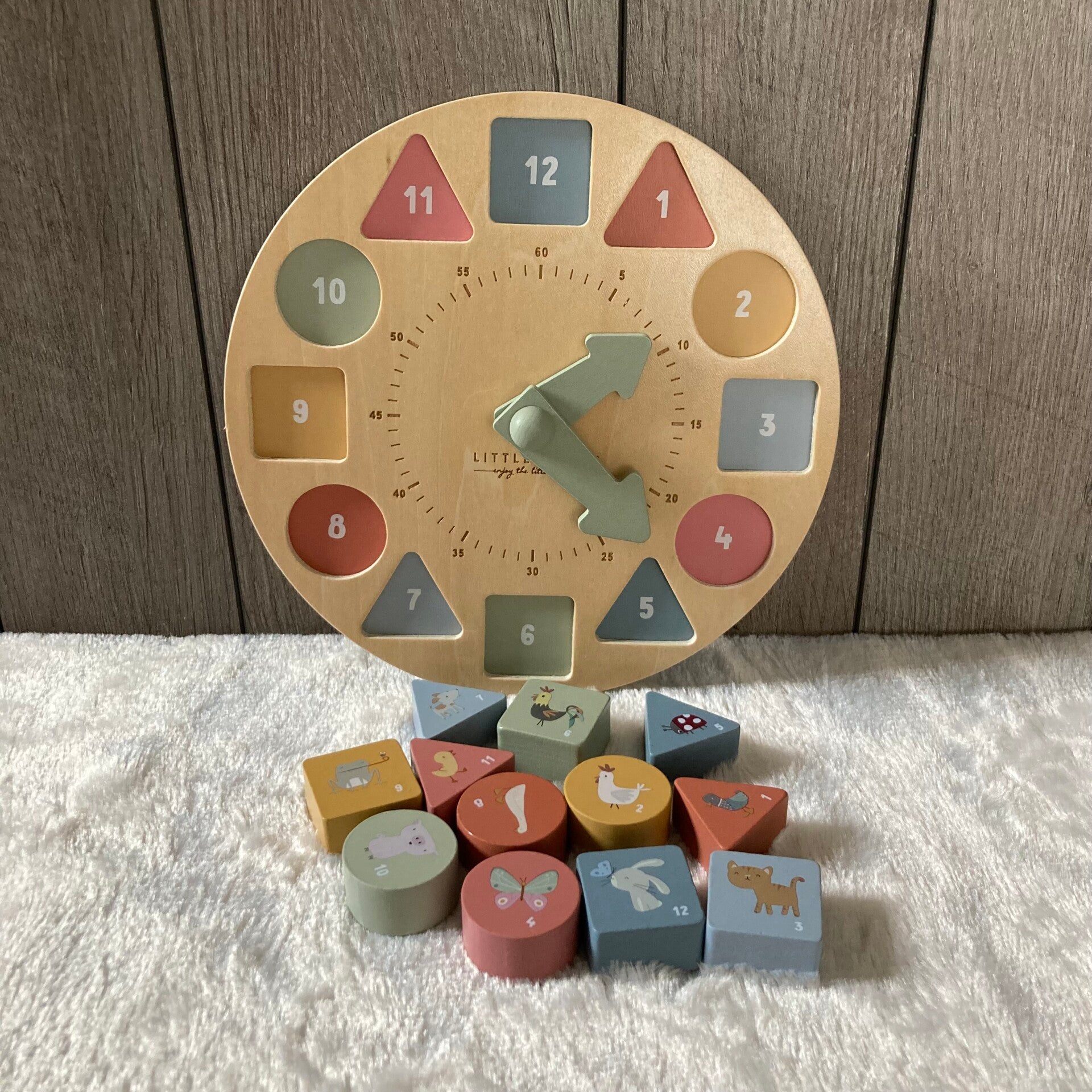 Hoe laat is het? Deze educatieve houten puzzelklok leert je kleintje op een speelse manier klokkijken. De klok heeft beweegbare wijzers en bevat 12 cijferblokjes die in bijpassende vakjes passen. Elk blokje is prachtig geïllustreerd met een dier om de leerervaring nóg leuker te maken. De puzzelklok van Little Dutch helpt kinderen ook bij het herkennen van kleuren, cijfers en vormen. Ze leren te tellen en herkennen cijfers en kleuren door de het juiste blokje op de juiste plek te leggen. Aanbevolen voor kinderen vanaf 2 jaar