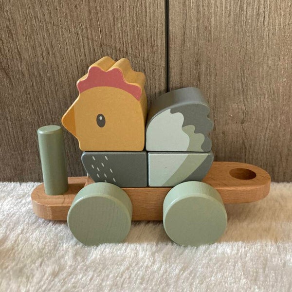 De mooie houten trein van Little Dutch is geïllustreerd met een kip en haar kuikentjes. Met de blokken in diverse vormen en kleuren kun je steeds andere kippen en kuikens maken. De trein bestaat in totaal uit 17 delen en is ± 40 cm lang. Dit speelgoed blijft leuk om mee te spelen en is tevens een leuke accessoire voor in de baby- of kinderkamer.