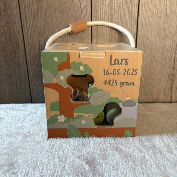 Welke vorm past waar? Met deze vormenstoof kun jij oefenen met het passen van verschillende vormen. De blokken zijn in de vorm van de lieve wilde babydieren van Jouéco! Zoals de panda, olifant, neushoorn en de koala. Waar past welk babydier? En waar moeten de andere 3 blokken? Door de deksel van de box af te halen, kun je de blokken er weer uit halen. Aan het hengsel, neem je de vormenstoof gemakkelijk mee. Alle onderdelen zijn gemaakt van hout.