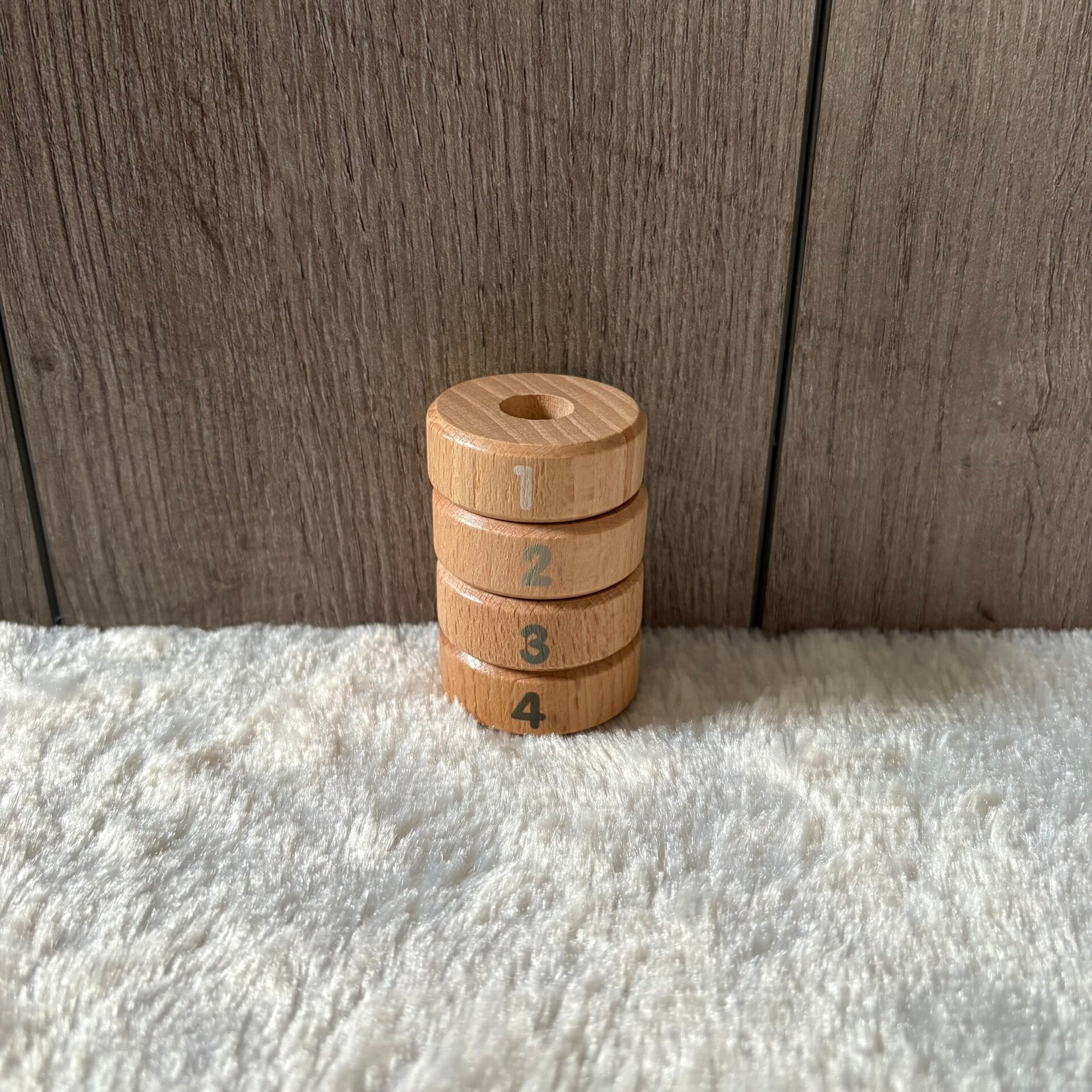 Deze 4 stapeltorentjes op vaste basis zijn vervaardigd uit kwaliteitsvol FSC gecertificeerd hout en voorzien van zachte Label Label kleurtinten met behulp van kindvriendelijke verf op waterbasis. 10 gekleurde stapelringen, 4 genummerde stapelringen en 4 Label Label topblokken helpen uw kindje stapelen, sorteren, tellen,… en zo veel meer. Kinderen kunnen zelf een spelletje bedenken en de ringen in volgorde van kleur op- of naast elkaar stapelen, de kleuren door elkaar halen, op de standaard of los, met figuren of zonder… Een verhaaltje verzinnen met de superleuke topblokken en het Label Label vriendje