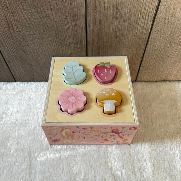 Zoek de juiste opening die past bij de vorm van een aardbei! En waren horen de paddenstoel, de bloem en het blaadje? Deze houten vormenstoof biedt een creatief sorteerspel dat je kindje leert om vormen en kleuren te herkennen en matchen, en verfijnt de hand-oog coördinatie. De stoof is gemaakt van stevig hout en versierd met de illustraties van een schattig Fairy Garden tafereel. Kleine handjes pakken de vormen makkelijk vast om ze vervolgens in de juiste opening te duwen. Dit klassieke speelgoed is leerzaam en leuk tegelijk!
