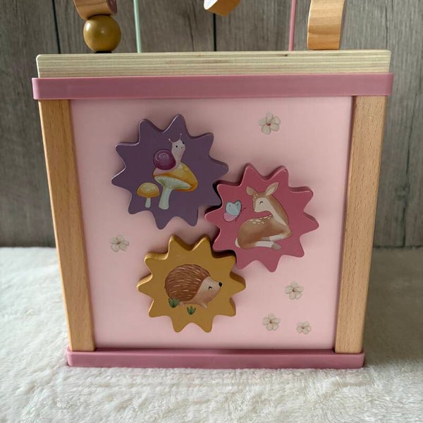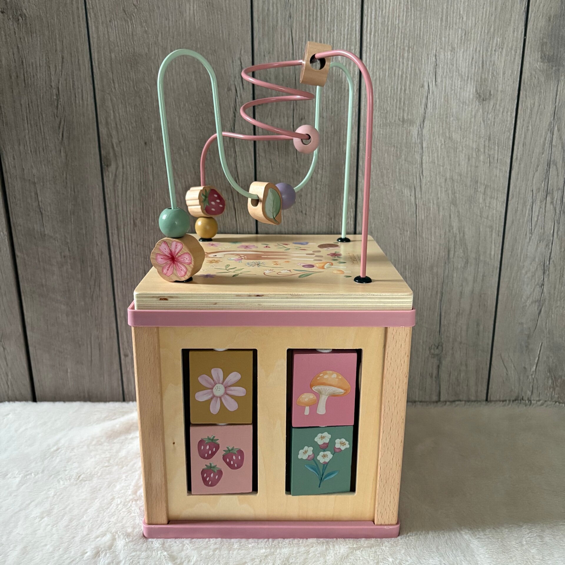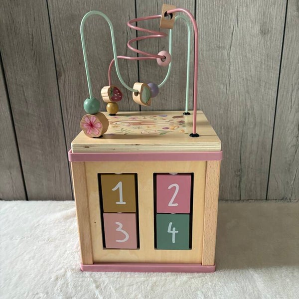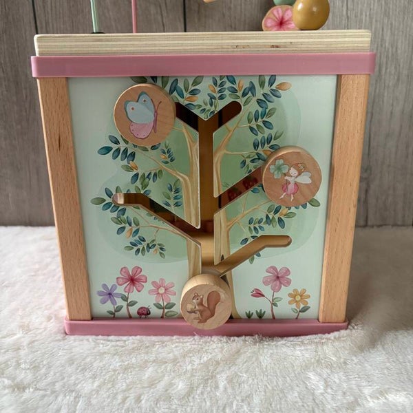 Ga op avontuur en verken alle zijden van deze kubus vol activiteiten. Elke zijde bevat betoverende elementen uit het Fairy Garden thema en biedt leuke educatieve activiteiten, zoals een vormenstoof, draaiende tandwielen, puzzels en bovenop een leuke kralenspiraal. Bij elke activiteit ontwikkelen kinderen hun fijne motoriek en worden ze aangemoedigd om hun creativiteit te gebruiken. Deze activiteitenkubus wekt niet alleen nieuwsgierigheid bij kinderen op, maar zorgt ook voor urenlang ontdekkings- en speelplezier.