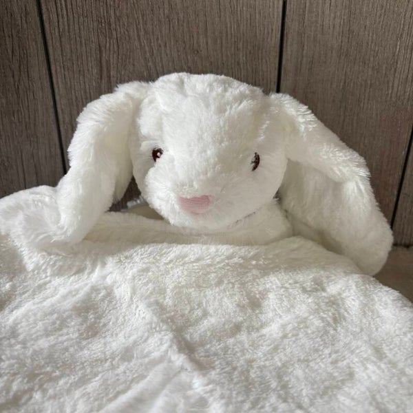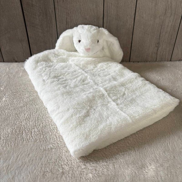 Deze grote pluchen deken is een perfect cadeautje en bedoeld om buiten op de grond te leggen of binnen warm te houden. De grappige konijnenkop, biedt een speels accent. De deken is dubbellaags en kan geschikt worden geborduurd.