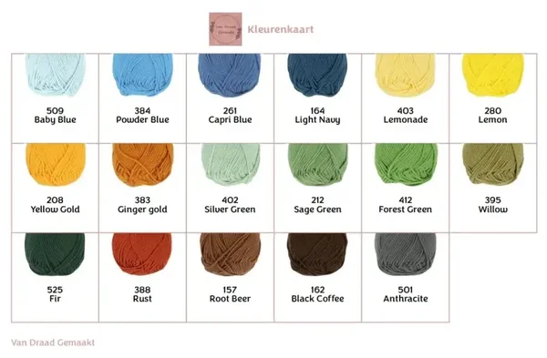 De punniknaam wordt handgemaakt van 100% katoengaren in een kleur naar keuze. Dit garen is: