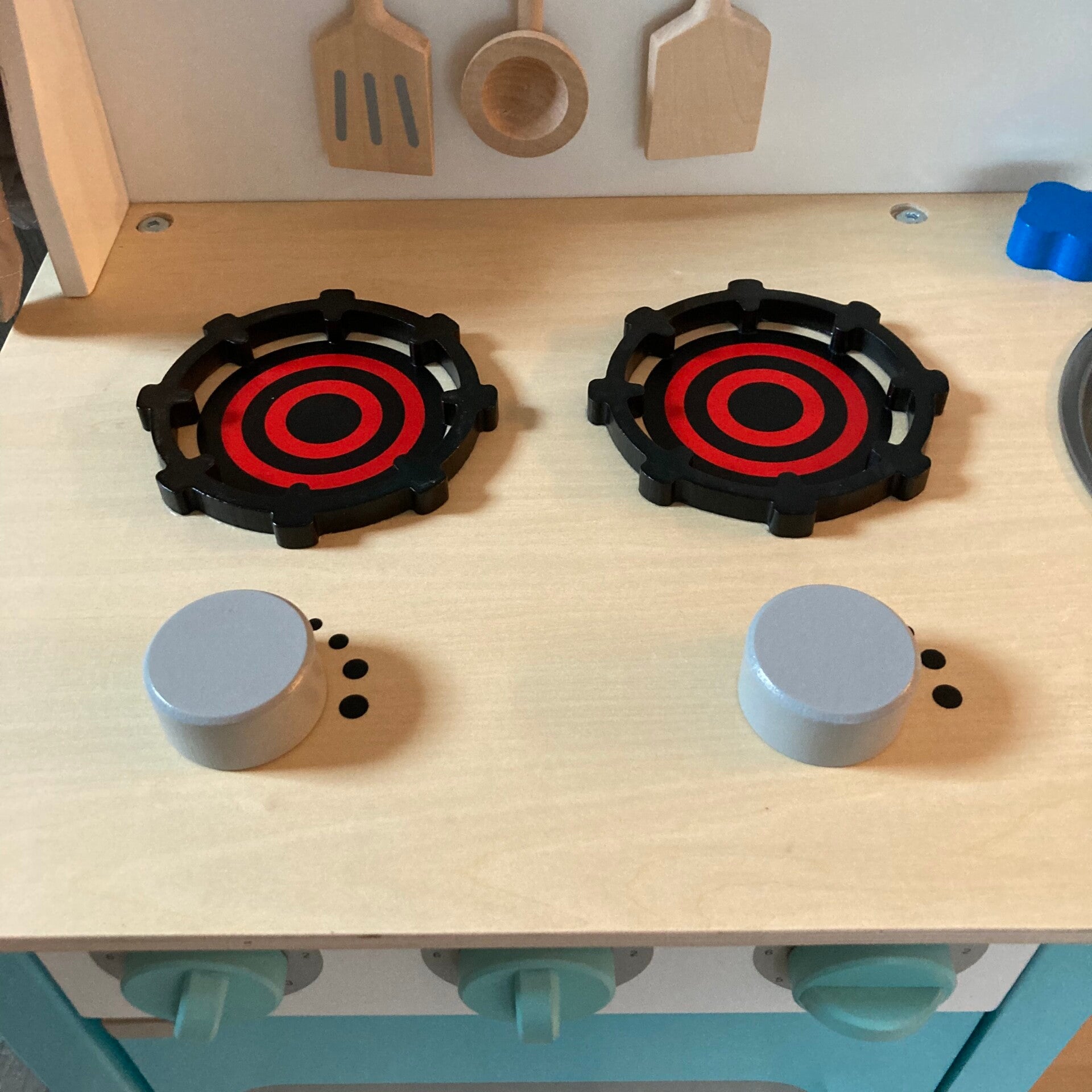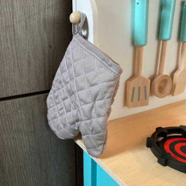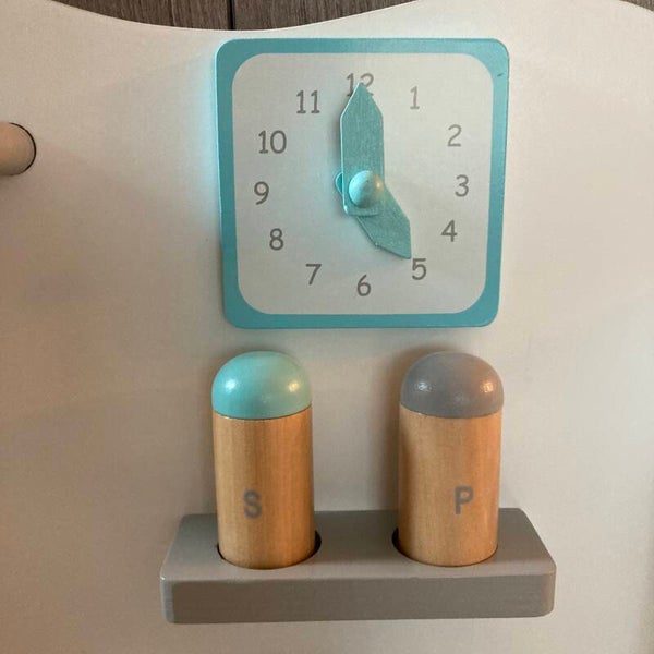Deze keuken is voorzien van twee kookplaten, een oven met een doorzichtige deur, knoppen die kunnen draaien, een afzuigkap, een keukenklok met beweegbare wijzers, een kraan met draaiknoppen, een uitneembare metalen spoelbak en een opslag plank. De twee knoppen op het aanrechtblad maken een realistisch geluid voor extra beleving en speelwaarde.