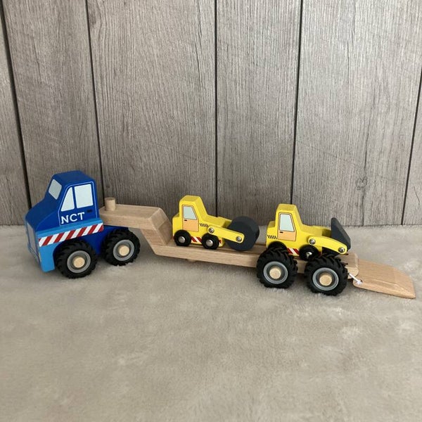 New Classic Toys Autotransporter met 2 bouwvoertuigen (met naam)