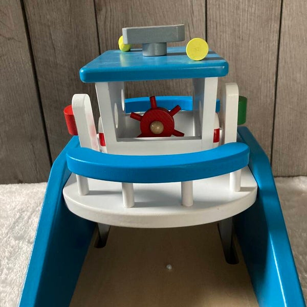 Jij wordt de kapitein van deze veerboot met wielen onder de bodem en brengt iedereen weer veilig naar de overkant. Afmetingen van deze veerboot zijn 44 x 19 x 24,5 centimeter.