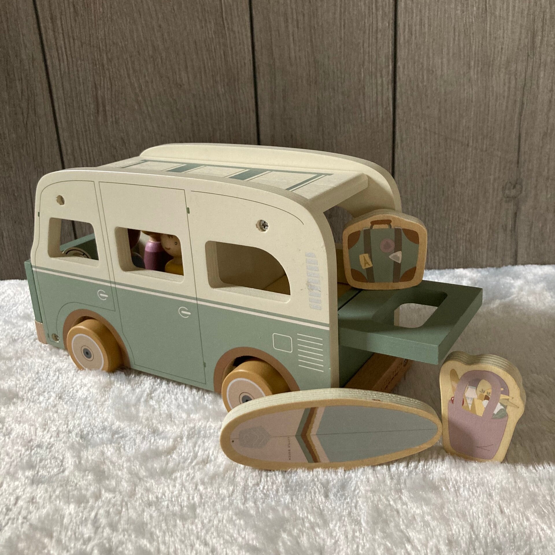 Met deze stoere houten bus van het merk Little Dutch zal je kindje urenlang speelplezier beleven. De bus is voorzien van 4 verschillende poppetjes en nog 3 stuks bagage, waardoor je kindje zijn fantasie de vrije loop kan laten.